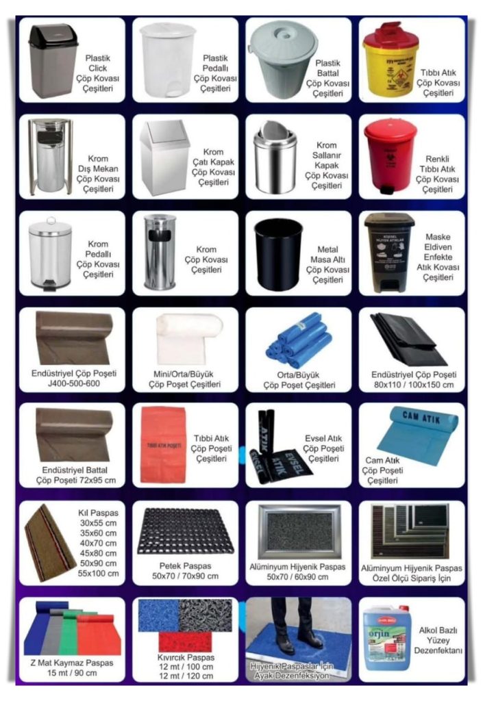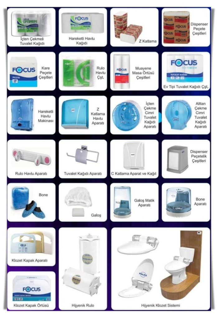 Tuvalet kâğıdı, havlu, peçete, dispenser, klozet kapak örtüsü, bone, galoş, hijyenik klozet sistemleri, hijyenik rulolar, çöp kovaları, tıbbi atık kovaları, endüstriyel çöp poşetleri, paspas çeşitleri, dezenfektanlar ve temizlik aparatları gibi birçok ürün, firmanın tedarik ağında yer alıyor.